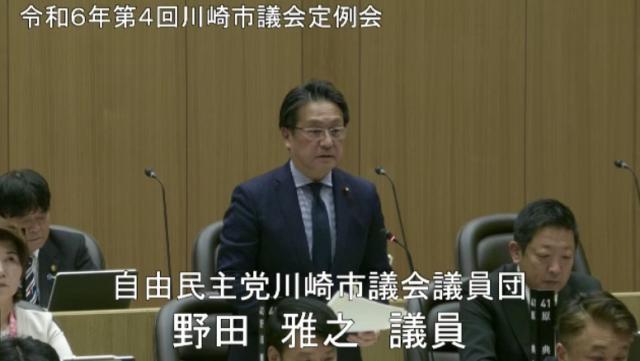 令和6年第4回 川崎市議会 定例会 一般質問 野田雅之 議員(幸区)の質問掲載